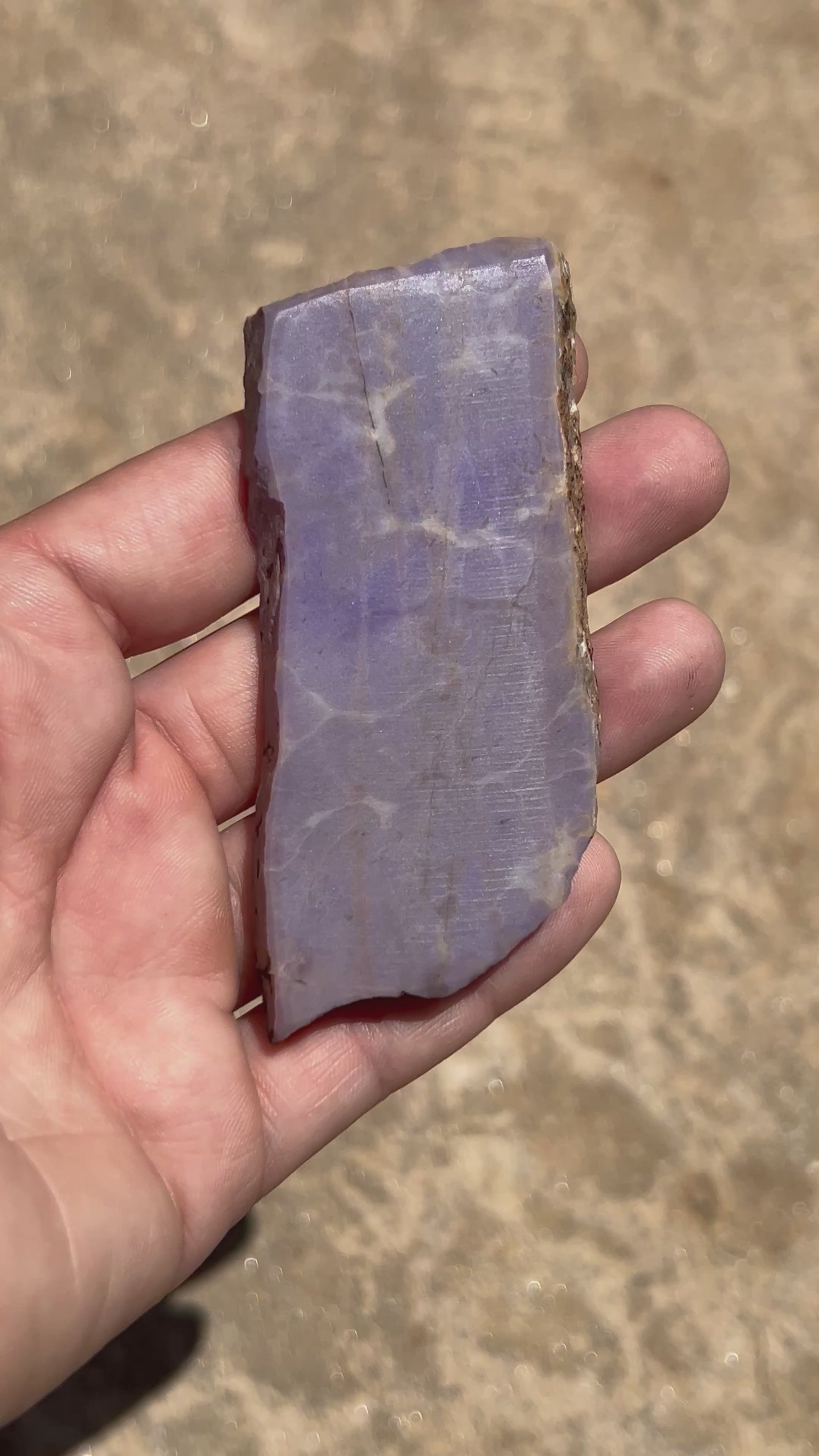 Hand-selected and cut in house from rough rock, our unpolished Turkish Purple Jade Slab showcases captivating lavender hues and subtle marbling. Measuring 76mm x 36mm x 8.9mm and weighing 74g, this piece is the perfect size for lapidary projects, crystal collections, or as a display accent that invites creativity and inspiration. Photos are show of the slab wet, video shows the slab dry in natural sunlight.