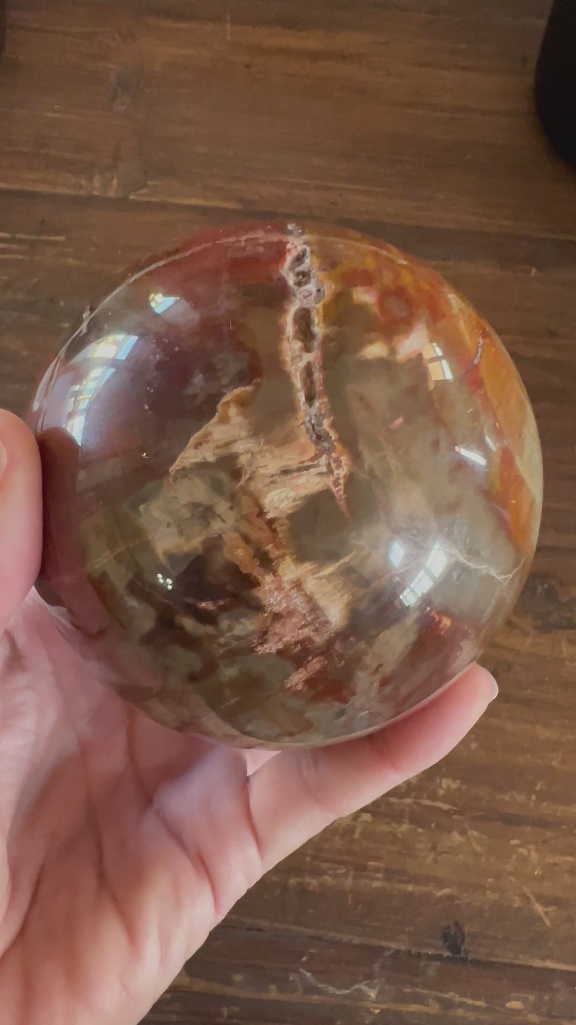 98mm (3.8 inches) Rainbow Petrified Wood Sphere