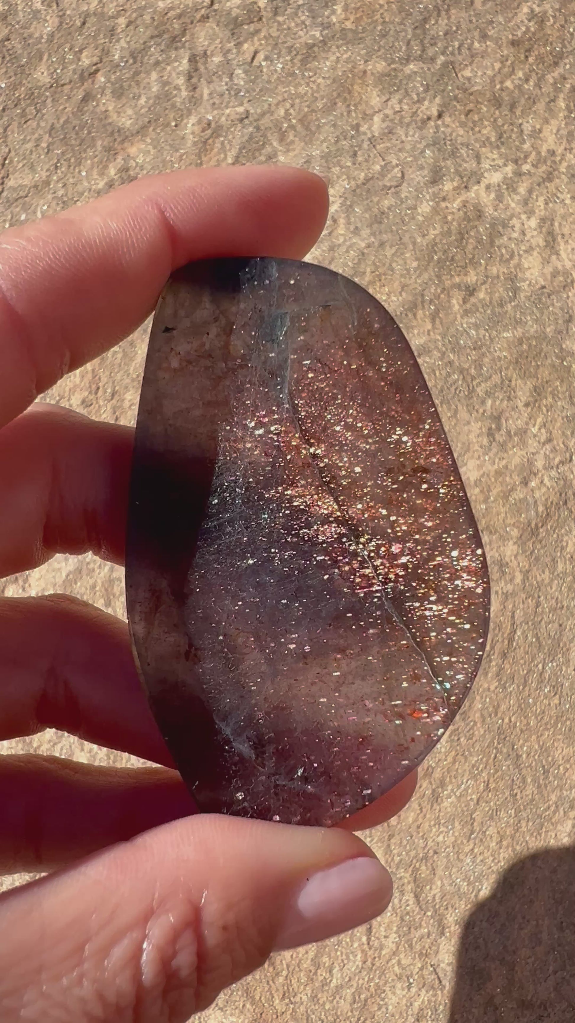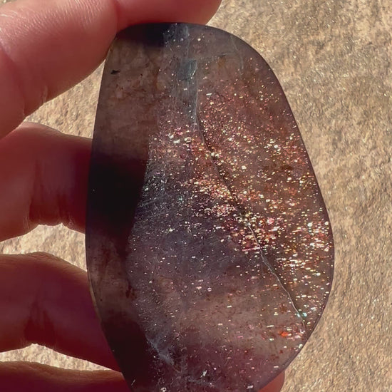 The photos show the slab both wet and dry so you can see its full potential when polished, while the video shows the slab dry, representing its true raw appearance. Sourced from India, Bloodshot Iolite Sunstone is prized for its rarity and bold color play, making it a favorite among collectors and lapidary artists.