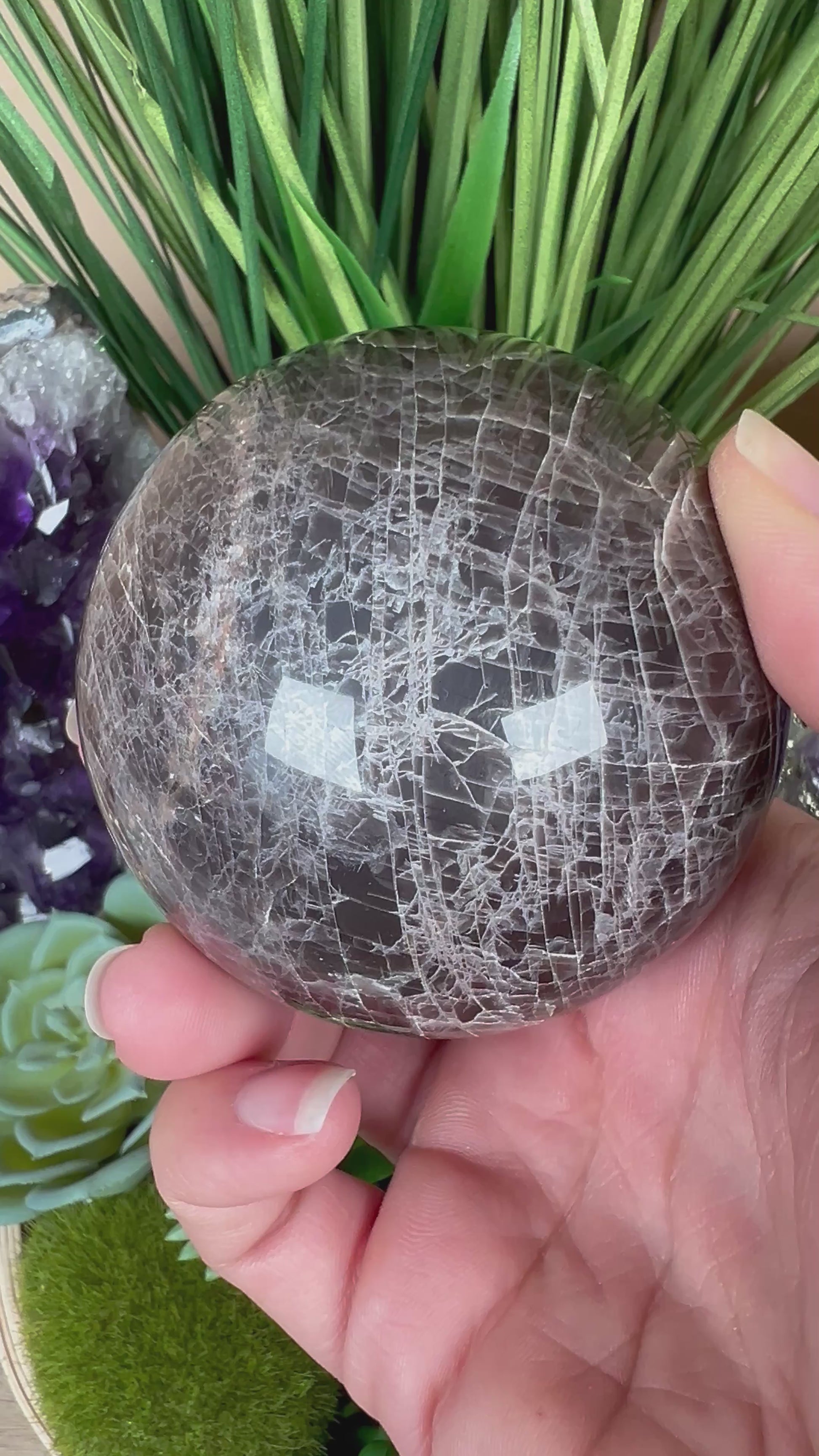 The sphere comes with its own stand, making it a perfect display piece for your home or sacred space. Whether you're using it for meditation, energy work, or simply as a striking decor item, this Black Moonstone Sphere is a must-have for any crystal lover.