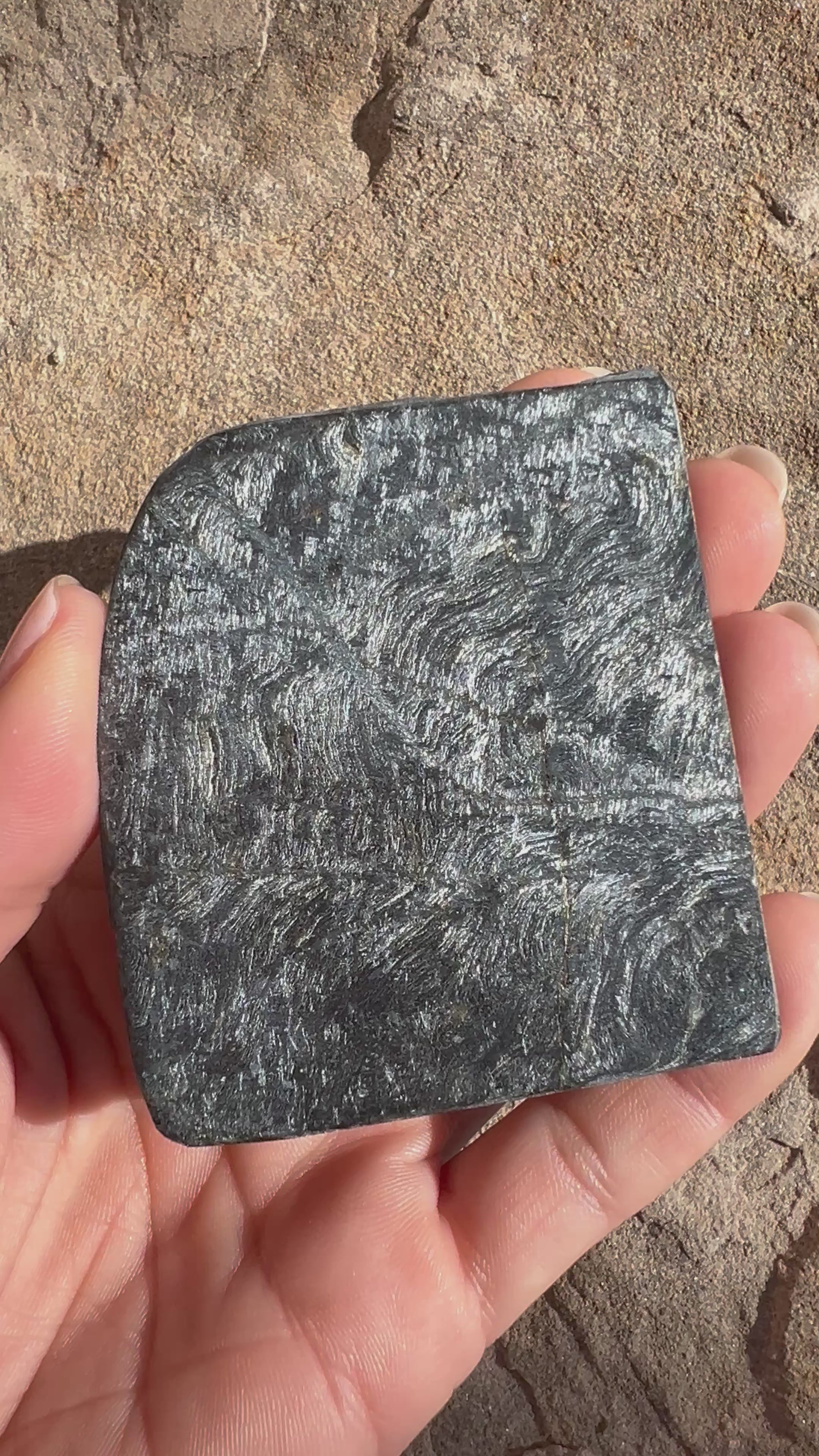 Sourced from Canada, Hypersthene is valued for both its visual depth and its grounding, calming energy. Keeping the slab unpolished allows you to see the true character of the stone and gives you complete freedom to finish it according to your creative vision.