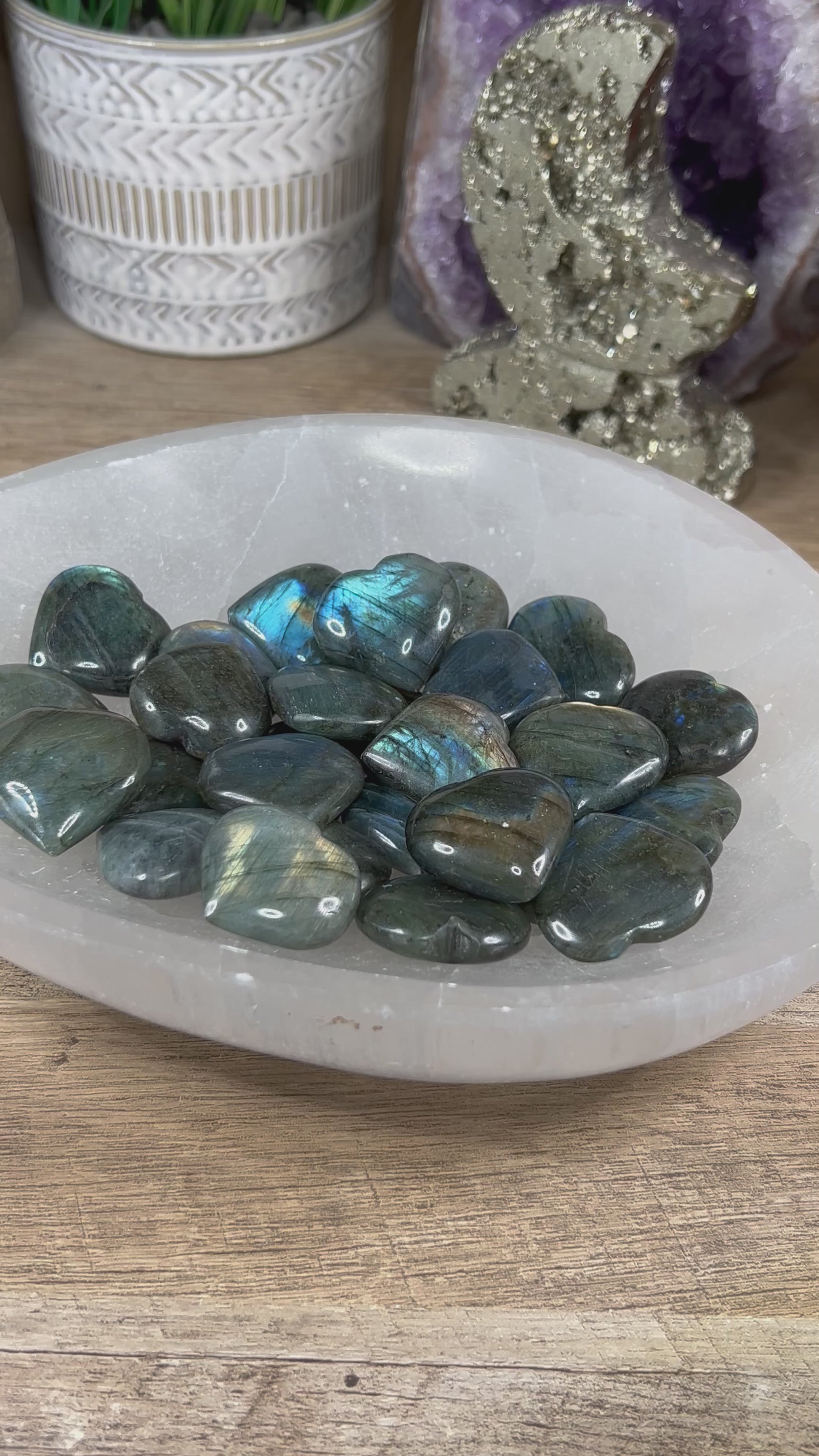 Each heart is hand-polished to highlight its mesmerizing labradorescence, a phenomenon that reflects the crystal's mystical energy and power. These small but potent hearts are perfect for those seeking to enhance their intuition, protect their energy, and deepen their spiritual practice.