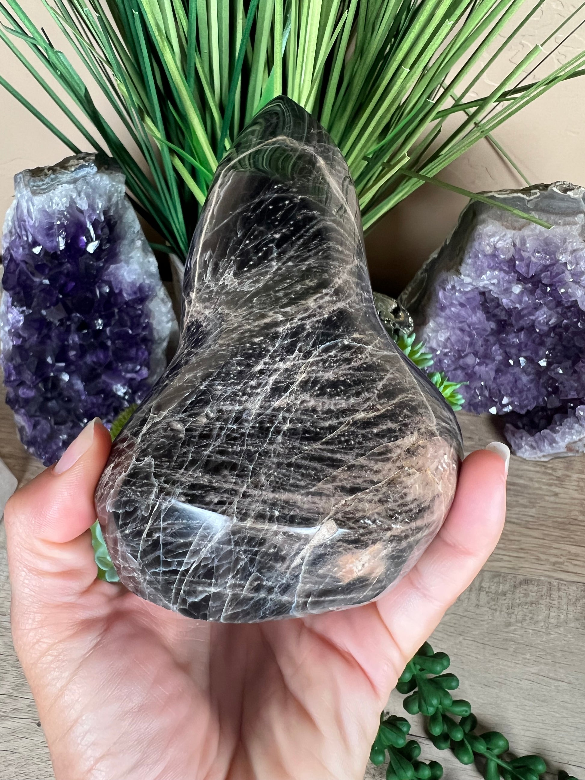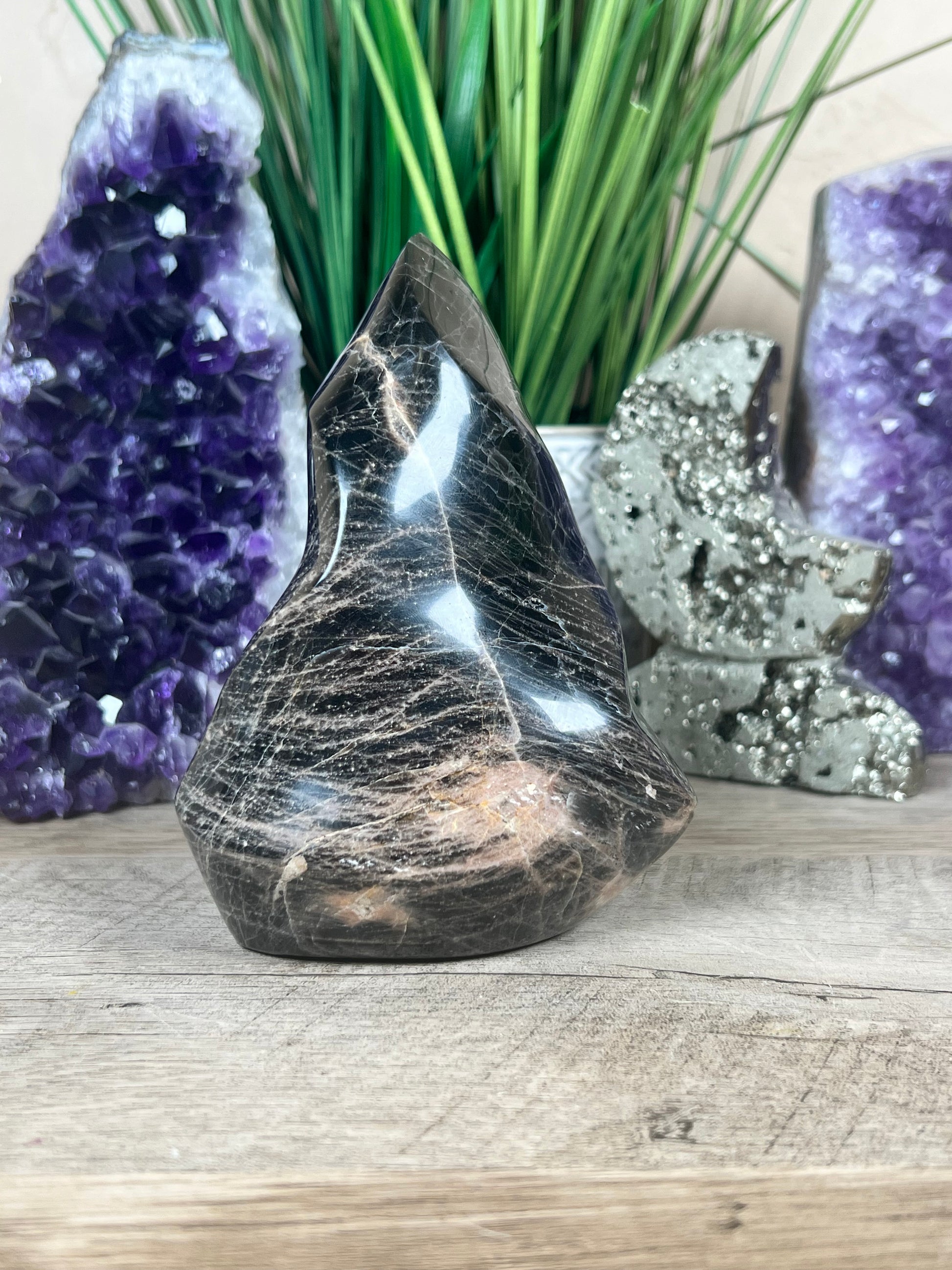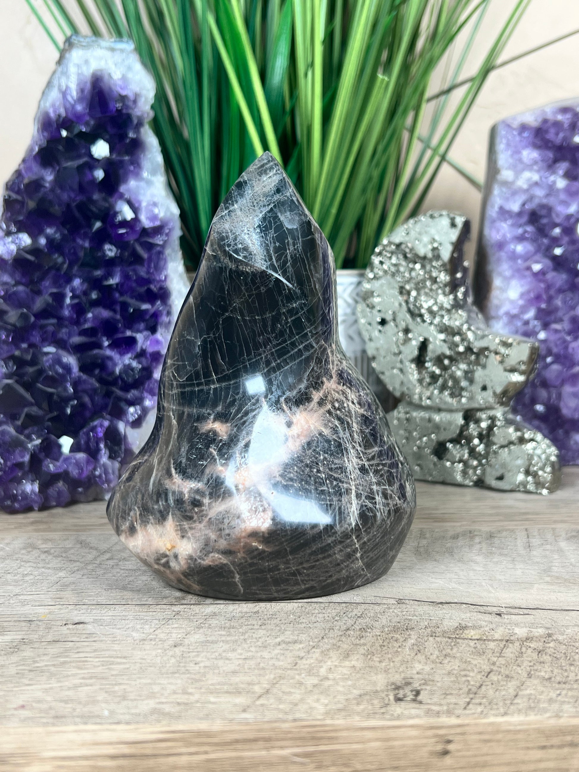 • Decorative Accent: Display this beautiful Black Moonstone Flame in your home or sacred space to invite grounding energy and enhance intuitive flow.