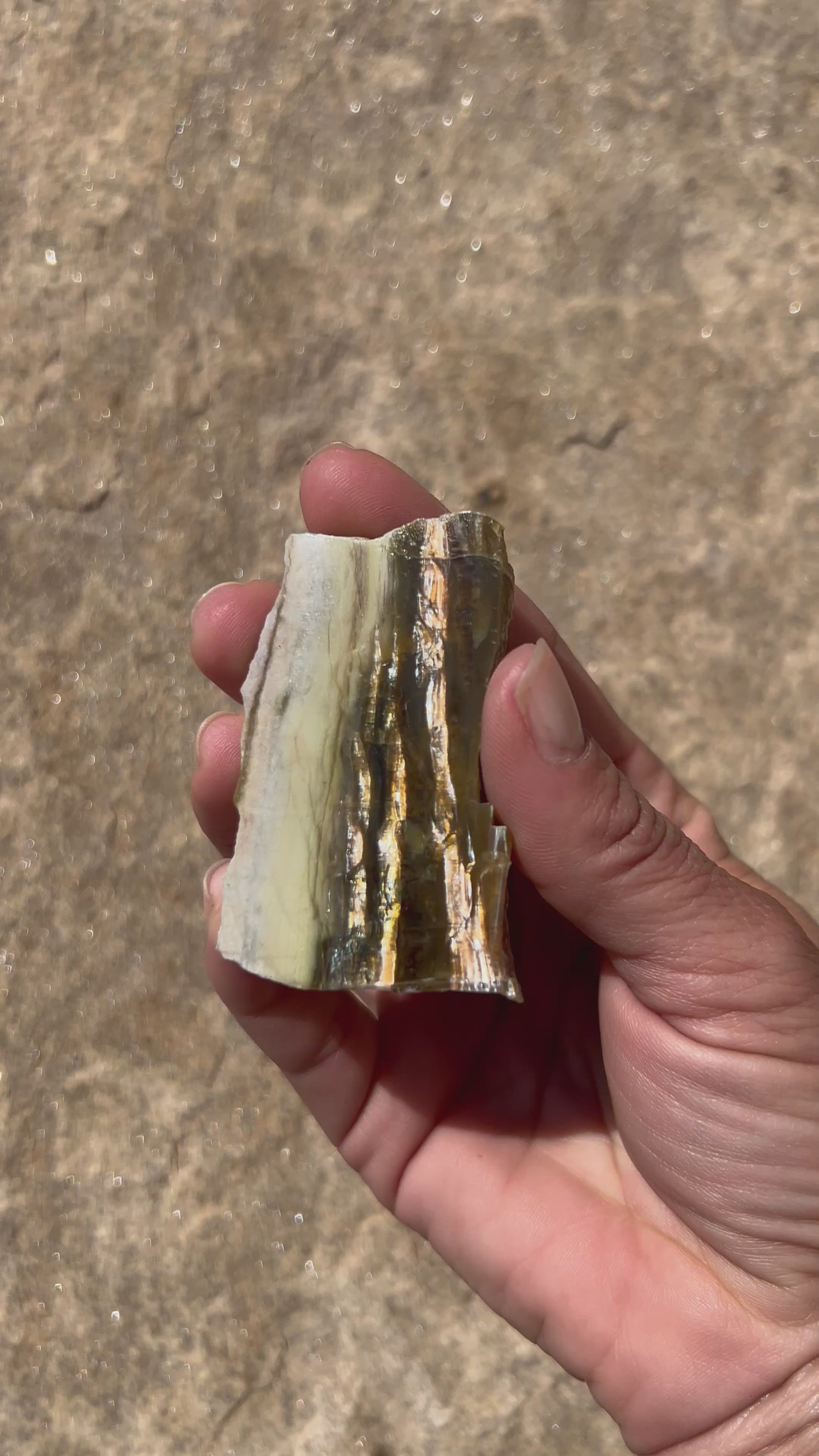 Referred to colloquially as “Arizona Pietersite” or “Arizona Tiger’s Eye,” this material is formed from Serpentine and Chrysotile. It displays dynamic, fibrous patterns that catch the light, creating the illusion of movement within the stone—much like genuine Pietersite or Tiger’s Eye would. Its eye-catching coloration and chatoyance make it a sought-after piece among collectors and lapidary enthusiasts. The mine is very difficult to get to and to extract the rock making Arizona Pietersite is a rare mineral to find.