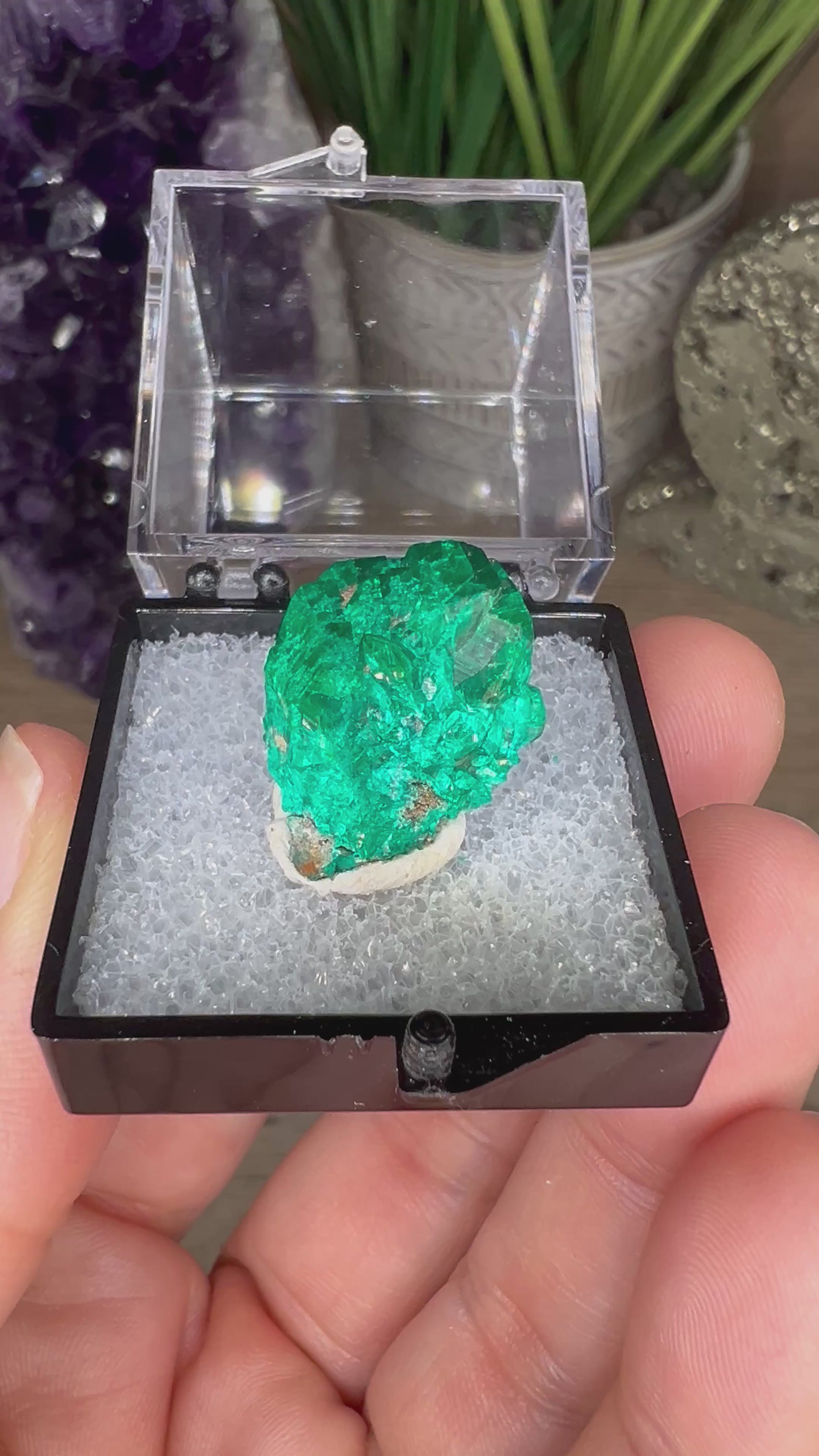 Experience the gemmy brilliance of this dynamic Dioptase Small Specimen, showcasing a rich green hue that captures the eye. This top-quality crystal is a true collector’s specimen. It is offers an intense vibrancy, unique crystalline structure. It is a solid piece that makes it a must-have for enthusiasts. Housed in a protective perky box, this piece is ideal for display or careful study. With its striking color and energy, this Dioptase is perfect for those seeking a beautiful and powerful addition to their collection.