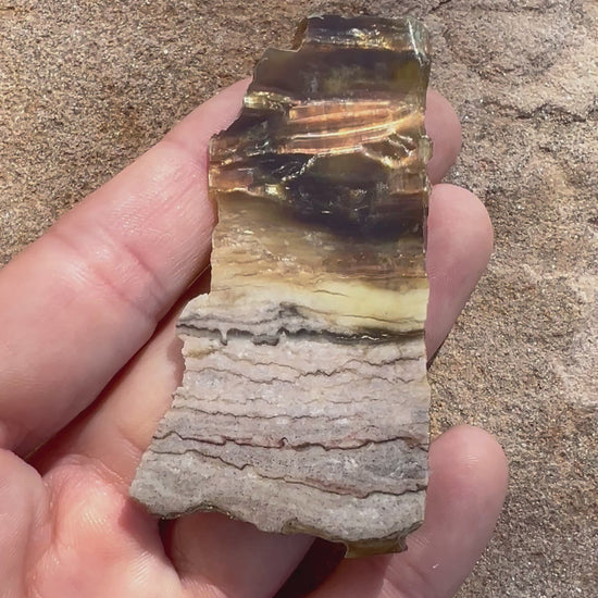 Referred to colloquially as “Arizona Pietersite” or “Arizona Tiger’s Eye,” this material is formed from Serpentine and Chrysotile. It displays dynamic, fibrous patterns that catch the light, creating the illusion of movement within the stone—much like genuine Pietersite or Tiger’s Eye would. Its eye-catching coloration and chatoyance make it a sought-after piece among collectors and lapidary enthusiasts. The mine is very difficult to get to and to extract the rock making Arizona Pietersite is a rare mineral to find.